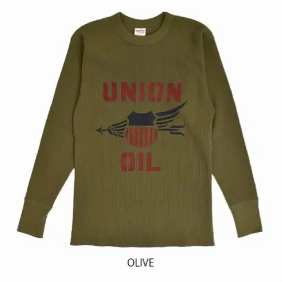 자동 번역되었어요. 원문보기리브 편직 올리브 색상 써멀 긴팔 티셔츠, UNION OIL 그래픽 프린트, 택 포함.