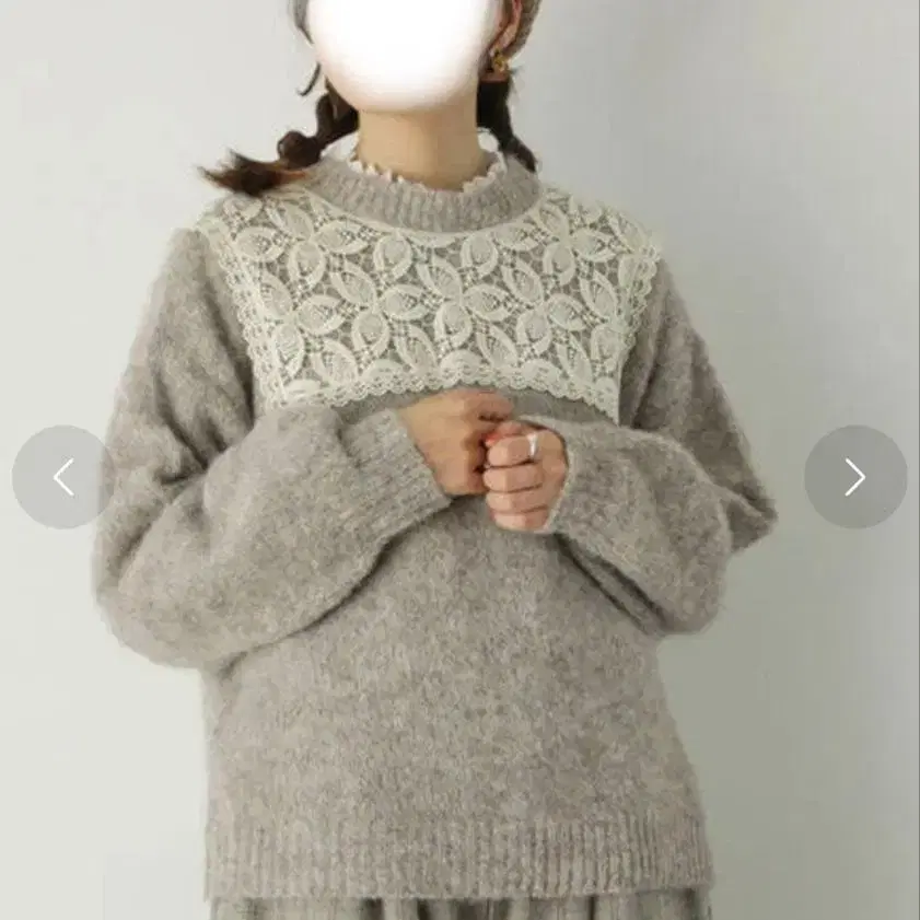새상품 사만사 모스모스 앞뒤 착용 레이스 부착 니트 모카