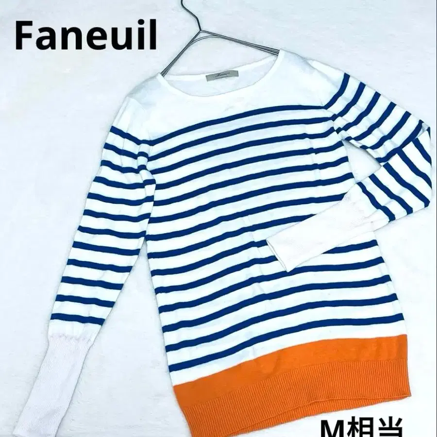[ 파누르 ] Faneuil 긴팔 니트 스웨터 M 상당 화이트/파랑 보더