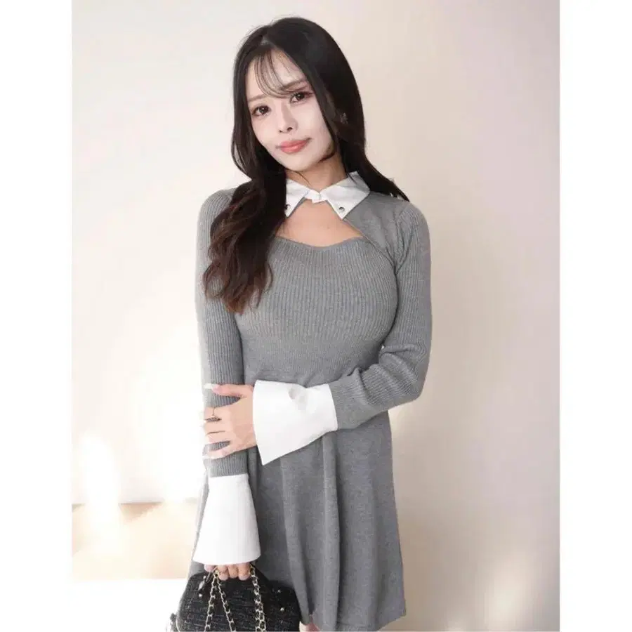 립 서비스 데콜테 오픈 플레어 니트 원피스
