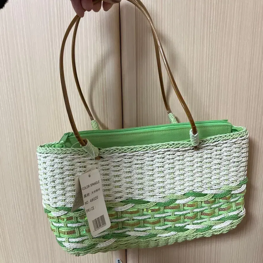 COLOR SPANGLE 바스켓백 그린/화이트
