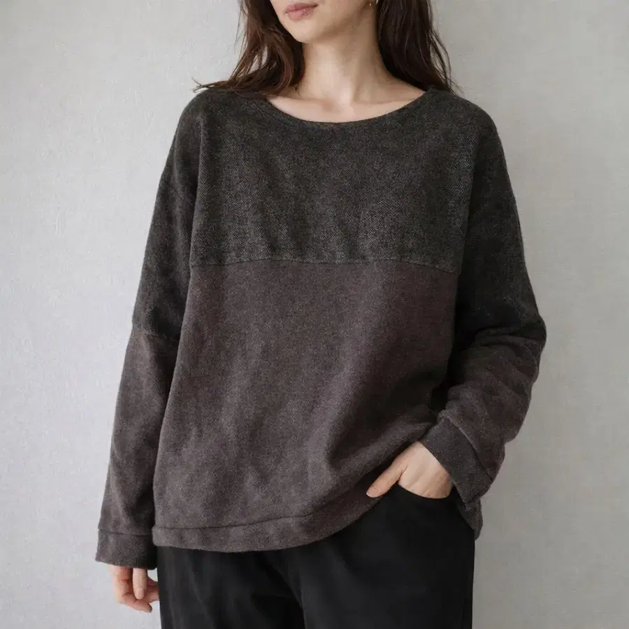 기모감이 있는 울 혼방 소재로, 가을/겨울에 어울리는 따뜻한 착용감.