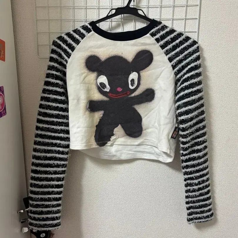 스트라이프 패턴 팬시 크롭 상의