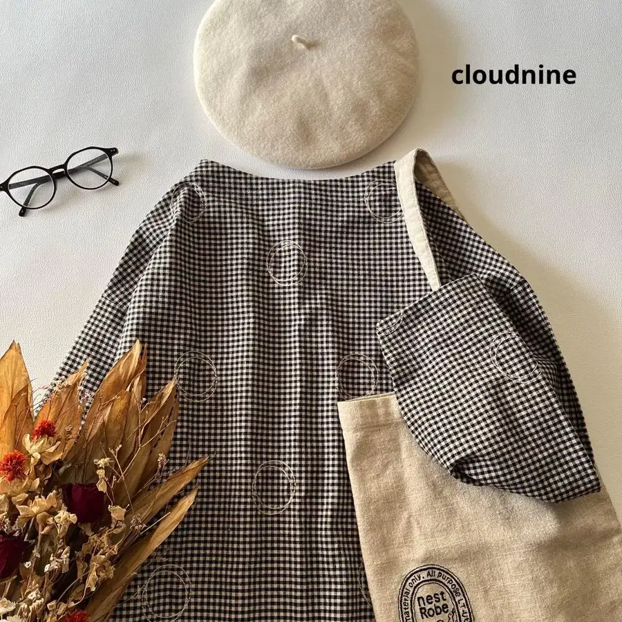 • 내추럴 바이 클립 면 린넨 롱 원피스 화이트 체크 가을 겨울 귀여운