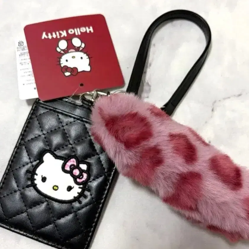 헬로키티 퍼 달린 패스 케이스 블랙