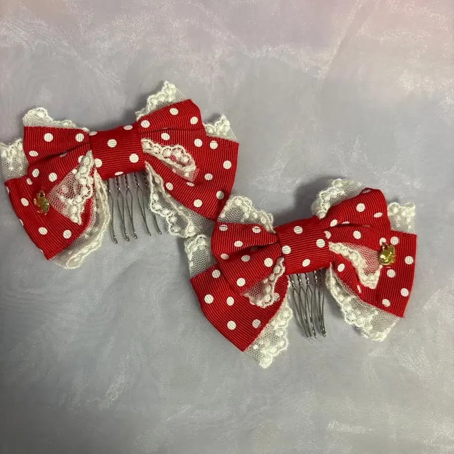 [ 앙프리 ] 도트 리본 빗 [ 갓 딴 딸기 ]