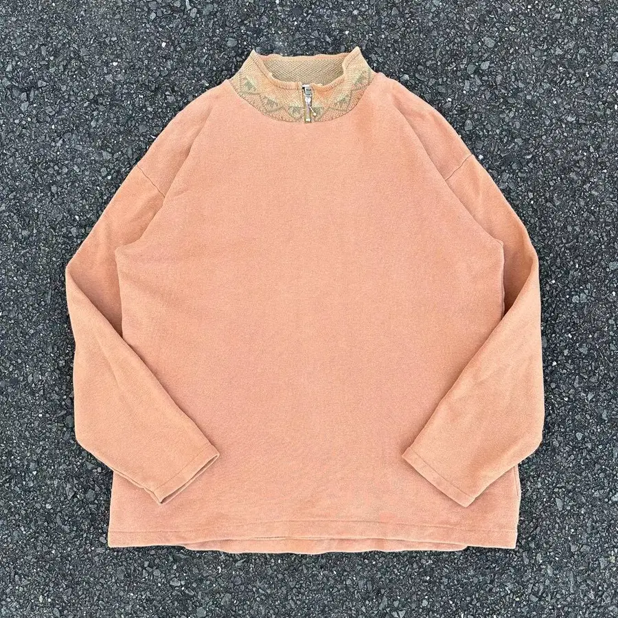 80s 맨투맨 모크넥 민족 패턴 볼 지퍼 vintage