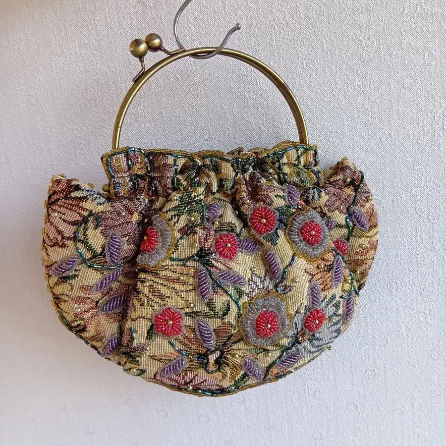 비즈 자수 핸드백 가마구치 입체 자수 꽃 고블랑 직조
