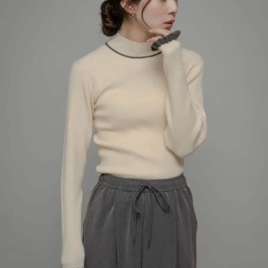 써니 레이블 소매 프릴 하이넥 풀오버 이번 시즌 신상 니트 OFFxGRY