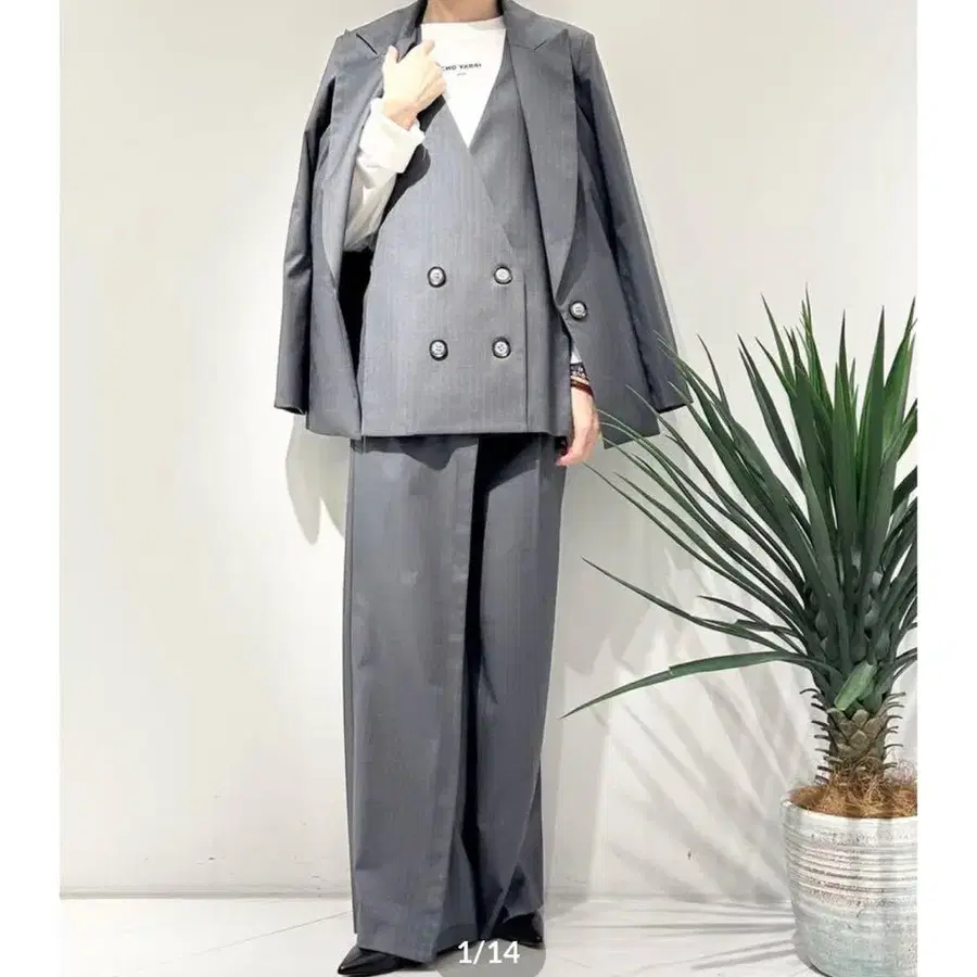 그레이 스트라이프 랩 와이드 팬츠 사이즈 38