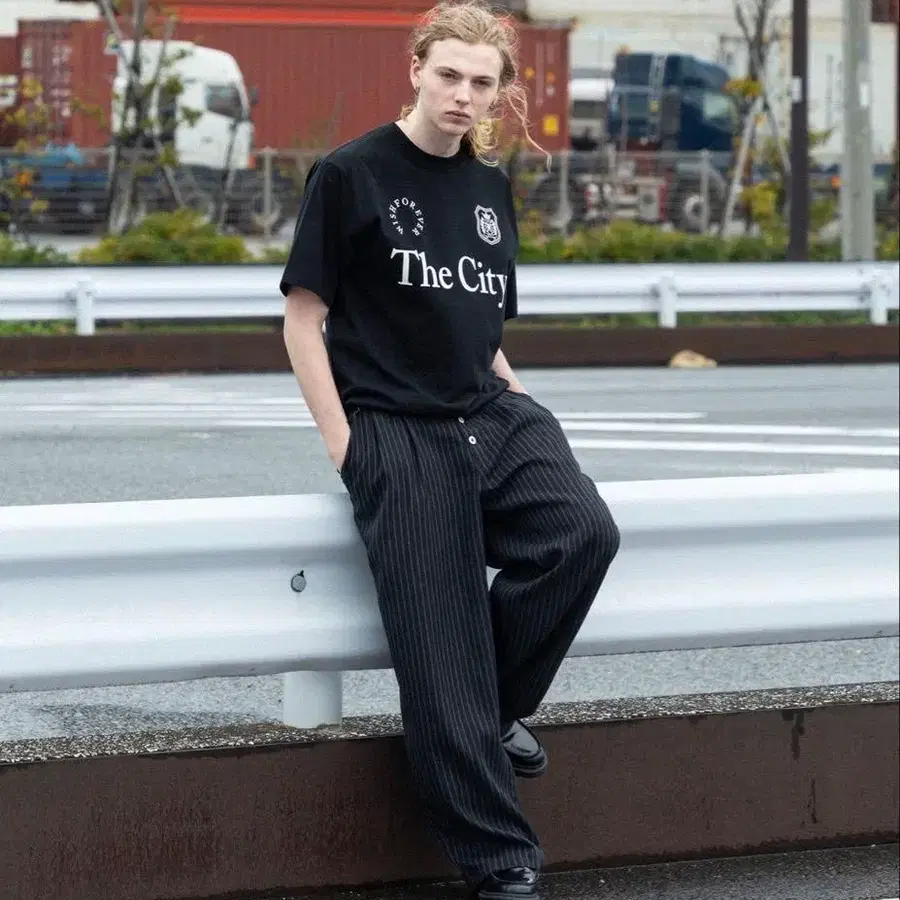 WISH FOR EVER 와이드 스트라이프 슬랙스