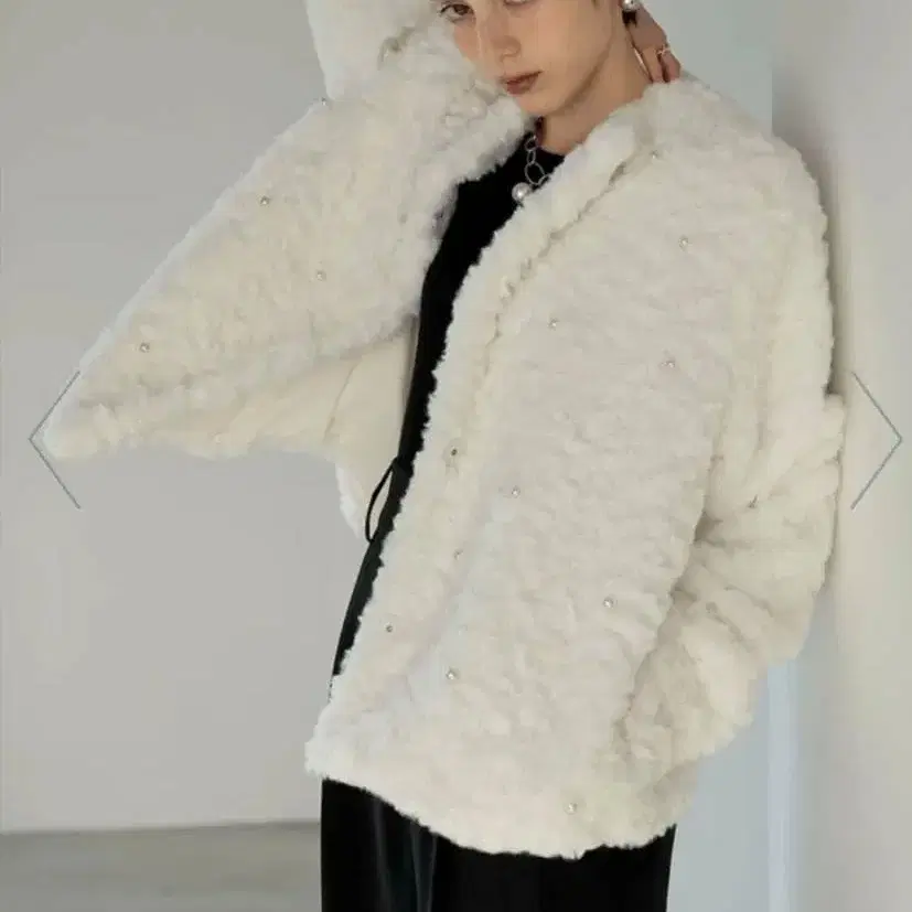 [MEISM by Re:EDIT] 인조 모피 펄 모티브 노카라 코트