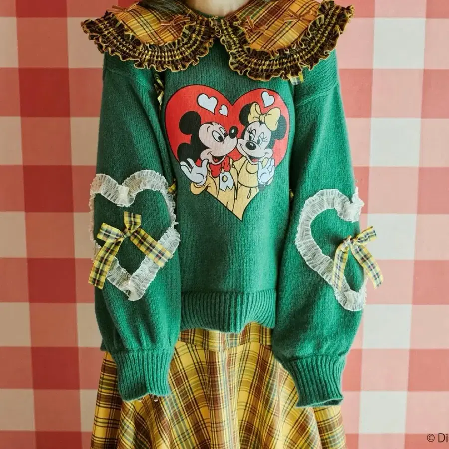 쿠틸 디즈니 미키 미니 하트 모티브 체크 리본 니트