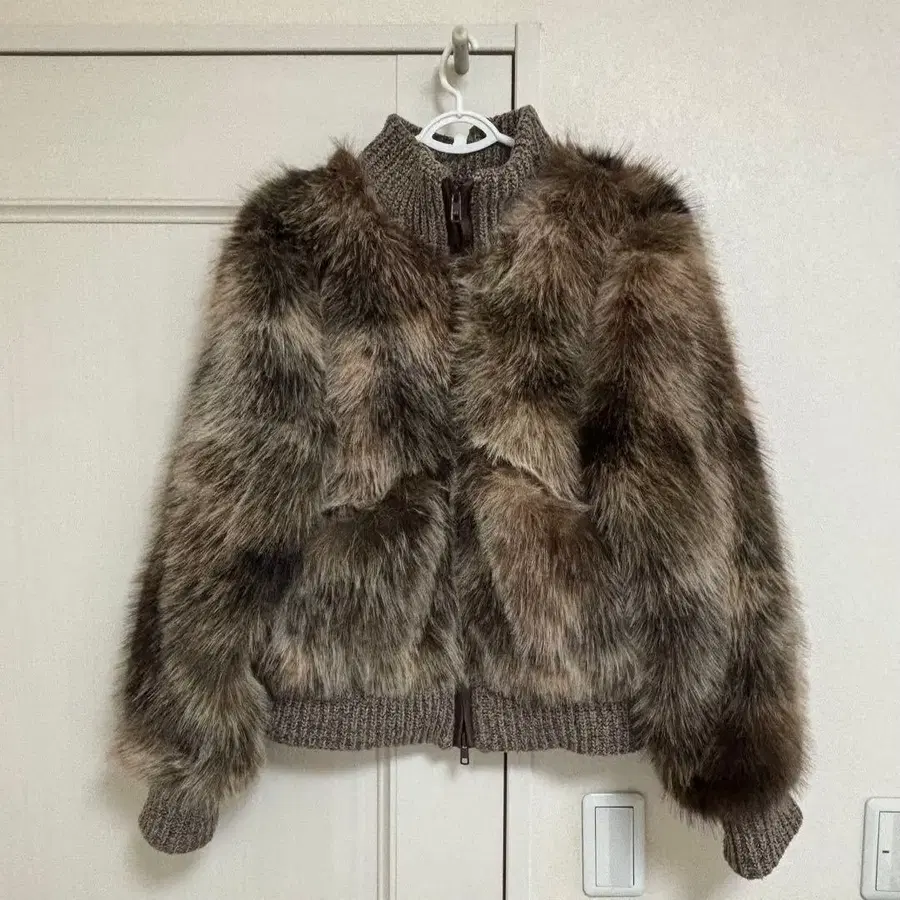 LAGUA GEM MIX KNIT FAUX FUR 블루종 브라운