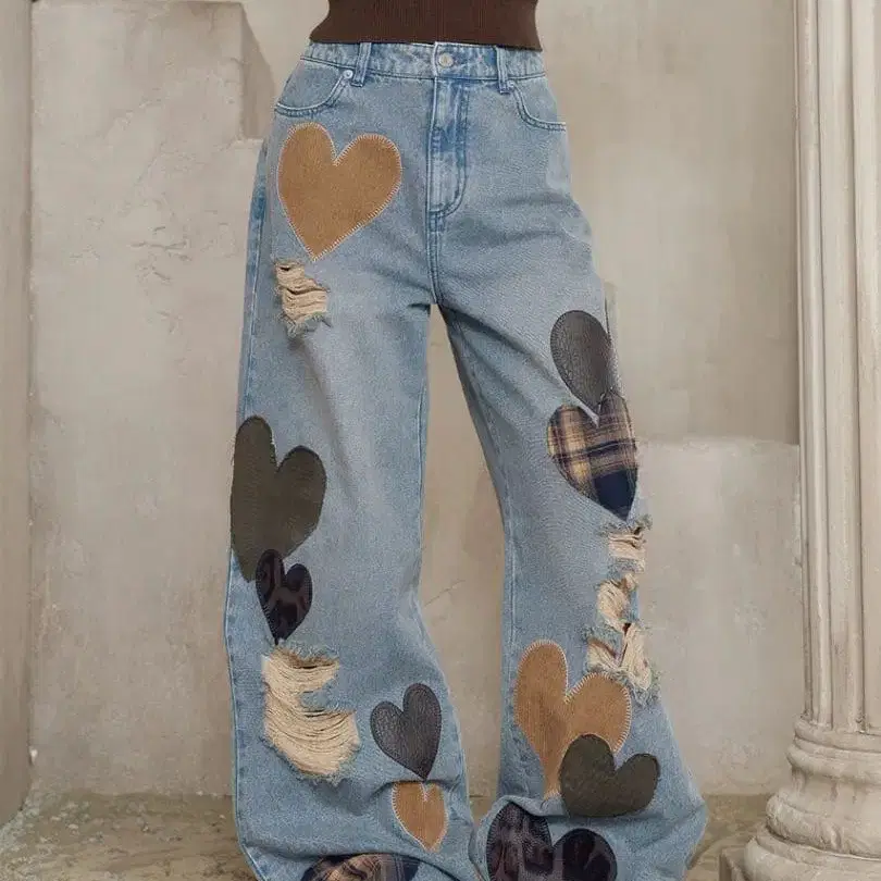 다리치 Darich 랜덤 하트 패치워크 데님 팬츠