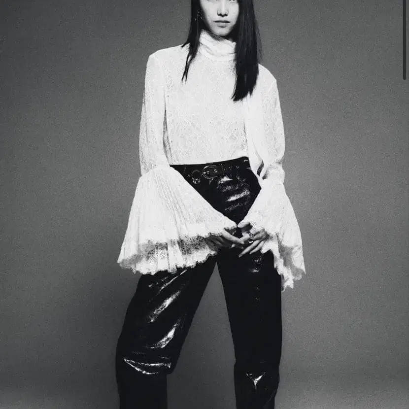 즉시 완판 현행 모델 레이스 플레어 소매 터틀넥 셔츠 백리본 H&M