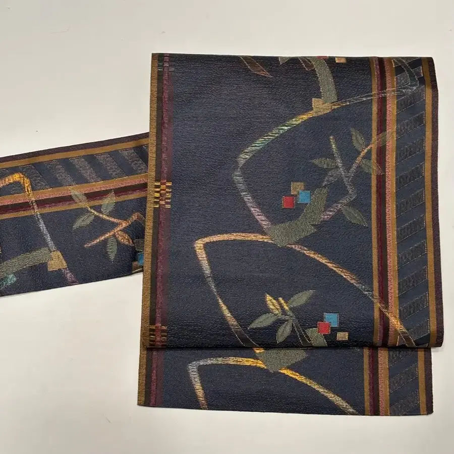 • 나고야 오비 마가타츠무기 추상 무늬 이마츠루색 O-5586