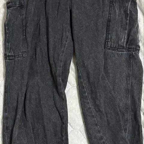 와이드 데님 카고 팬츠 그레이 블랙