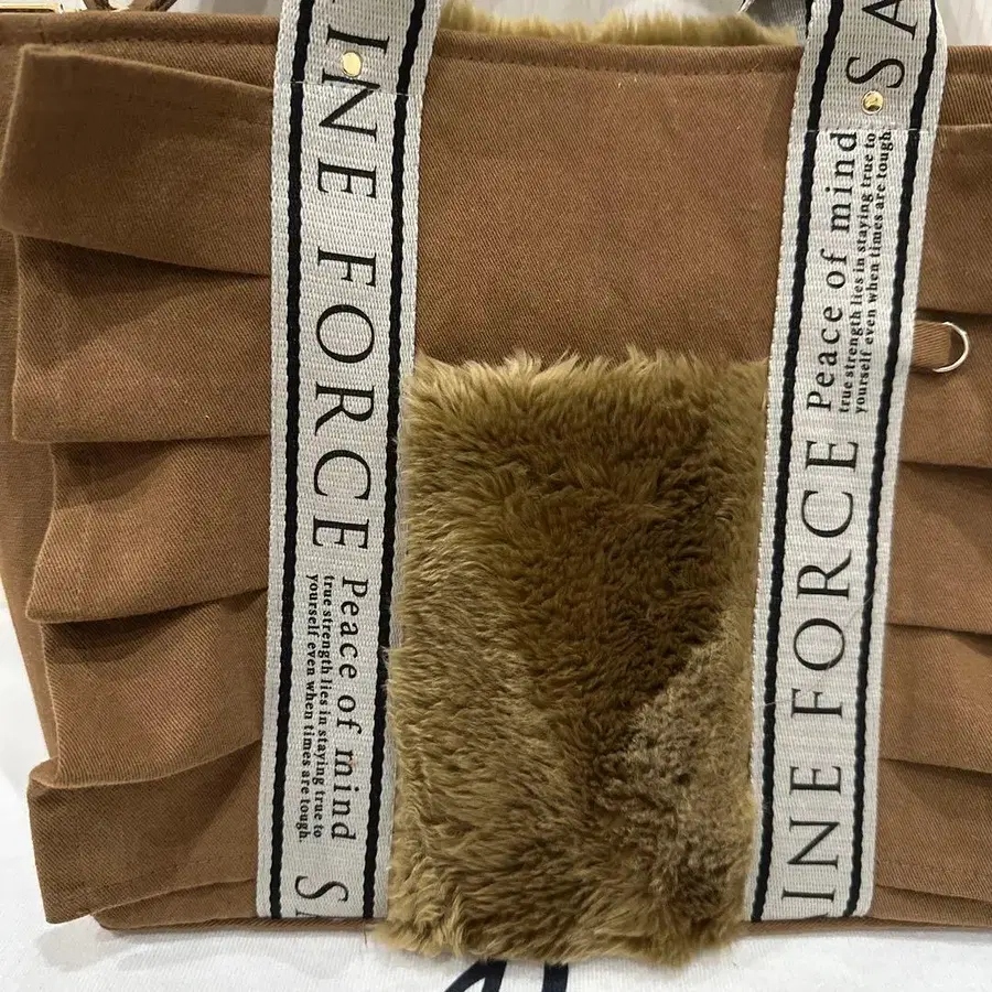 데님 살로펫 프릴 퍼 토트백 숄더백 브라운