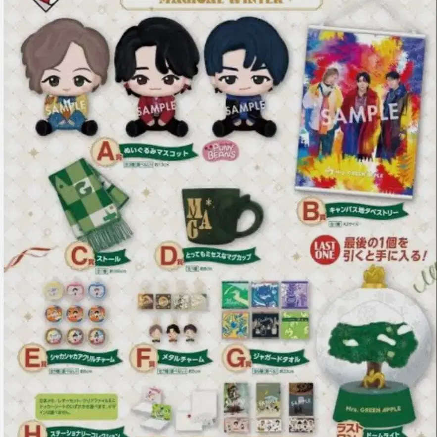 Mrs. GREEN APPLE 봉제 인형 마스코트와 메탈 참 세트 8점