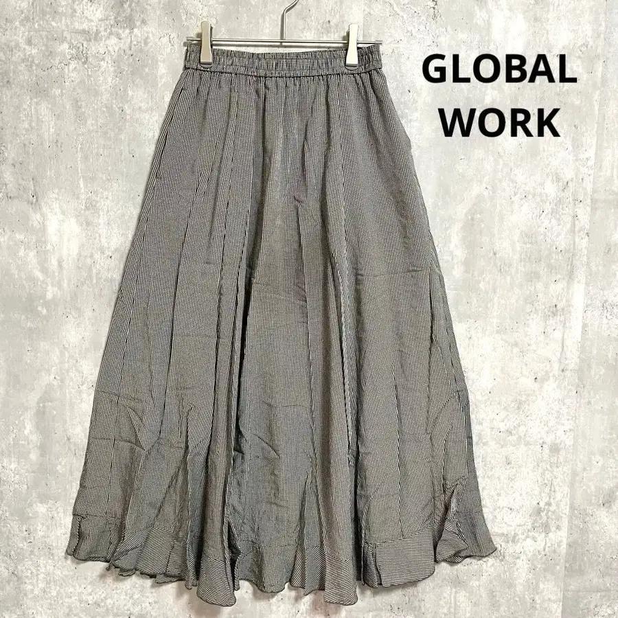 GLOBAL WORK 깅엄 체크 플레어 롱 스커트 허리밴딩