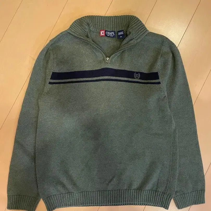 레어 랄프 로렌 CHAPS 하프 지퍼 스웨터 M 그린 스트라이프