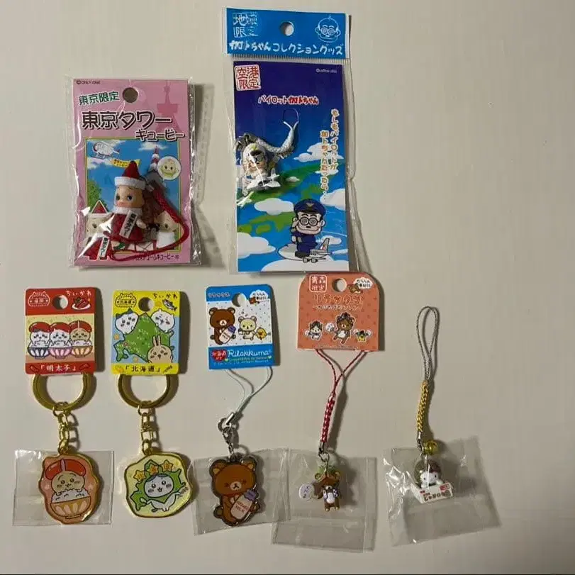 리락쿠마 치이카와 (먼작귀) 헬로키티 지역 한정 키링 기념품 7개 세트