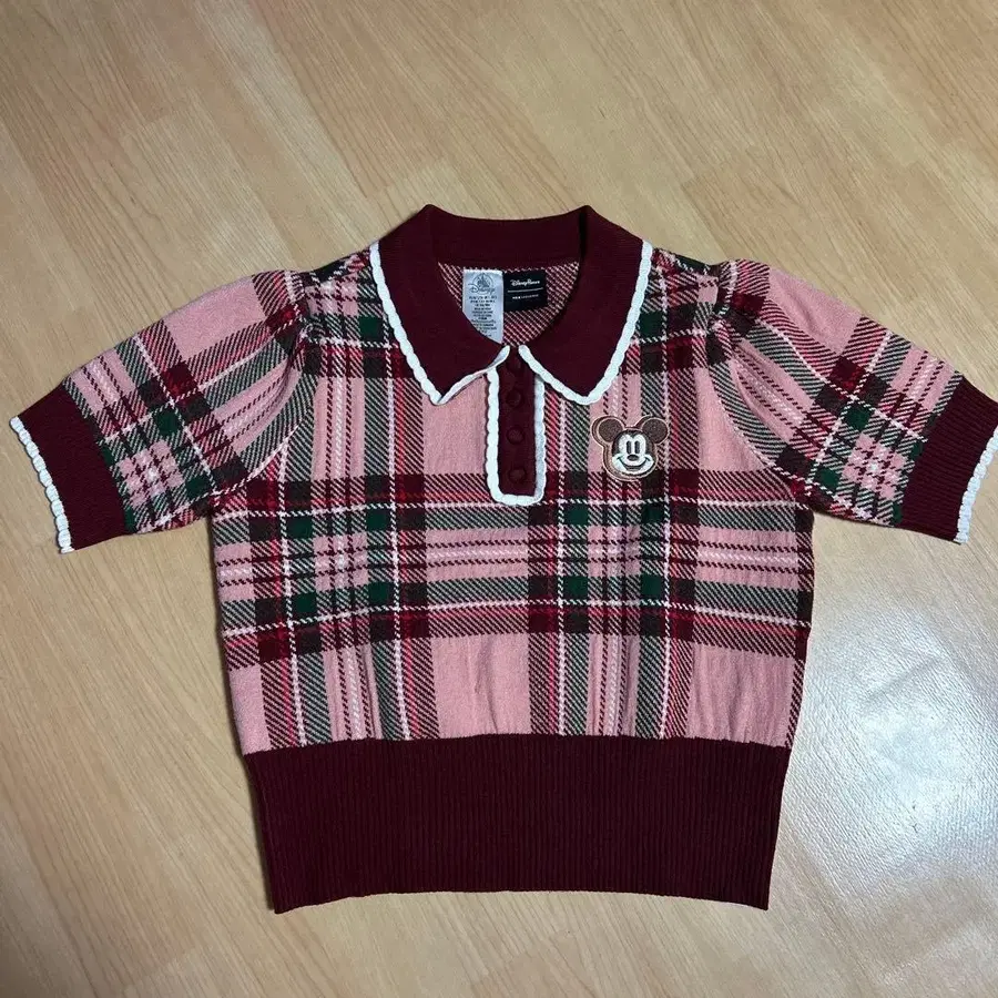 홍콩 디즈니 미키마우스 반팔 폴로 니트 체크 무늬