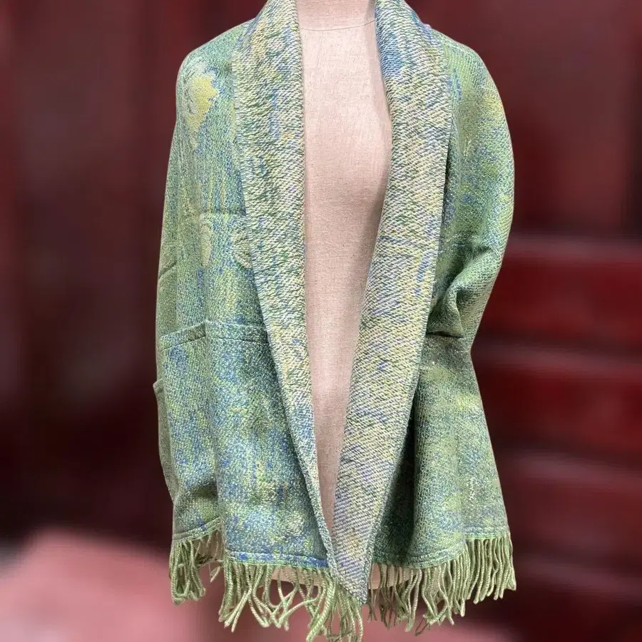 프랑스제 프린지 장식 그린 계열 스톨