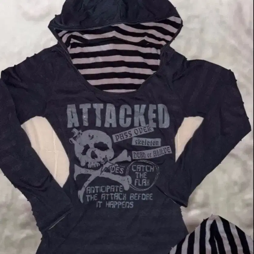 후드 부착 스컬 디자인 긴팔 상의 y2k punk 펑크 그런지