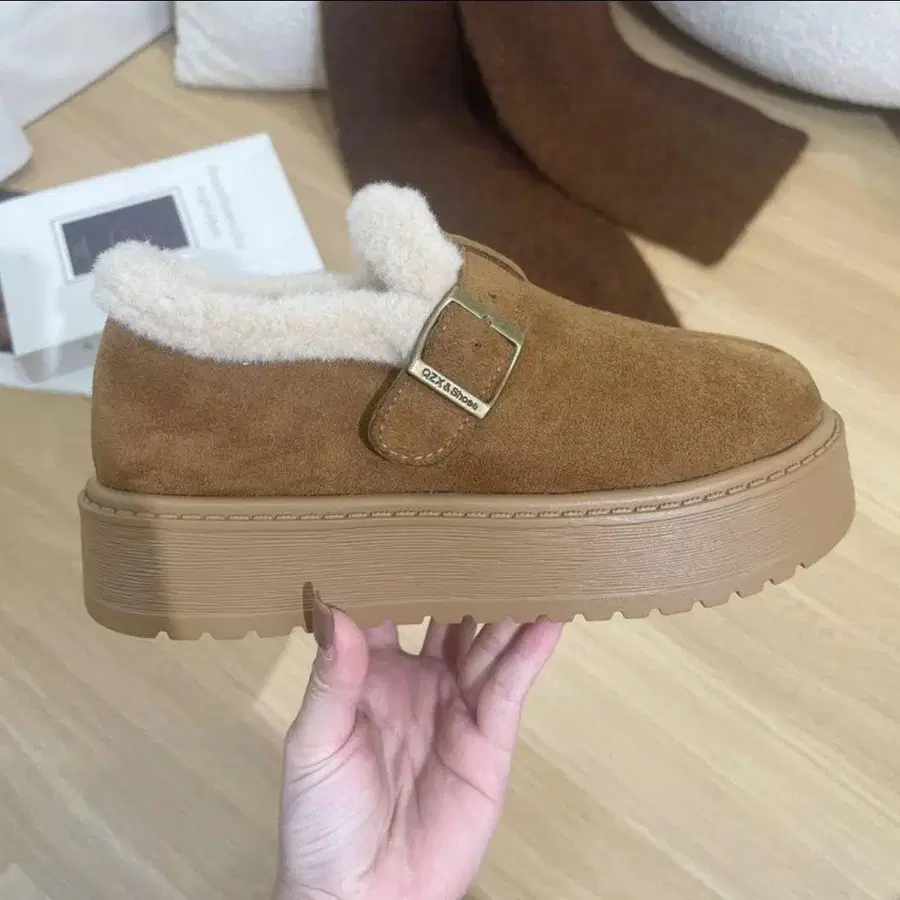 브라운 스웨이드 통굽 부티 38