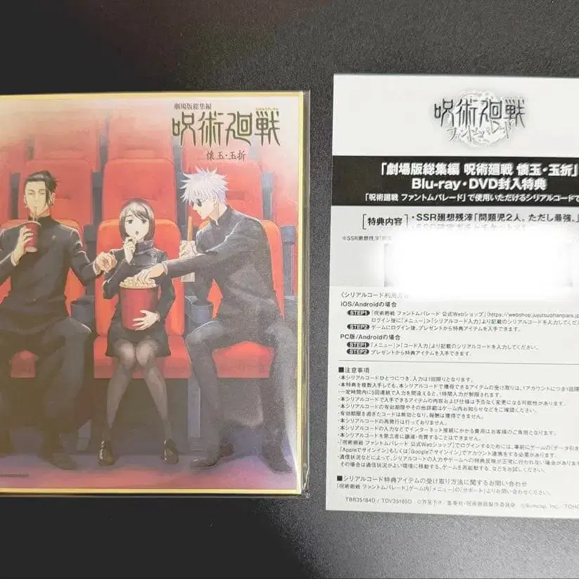 주술회전 극장판 총집편 회옥 옥절 구매 혜택 색지 시리얼 코드 고죠 게토
