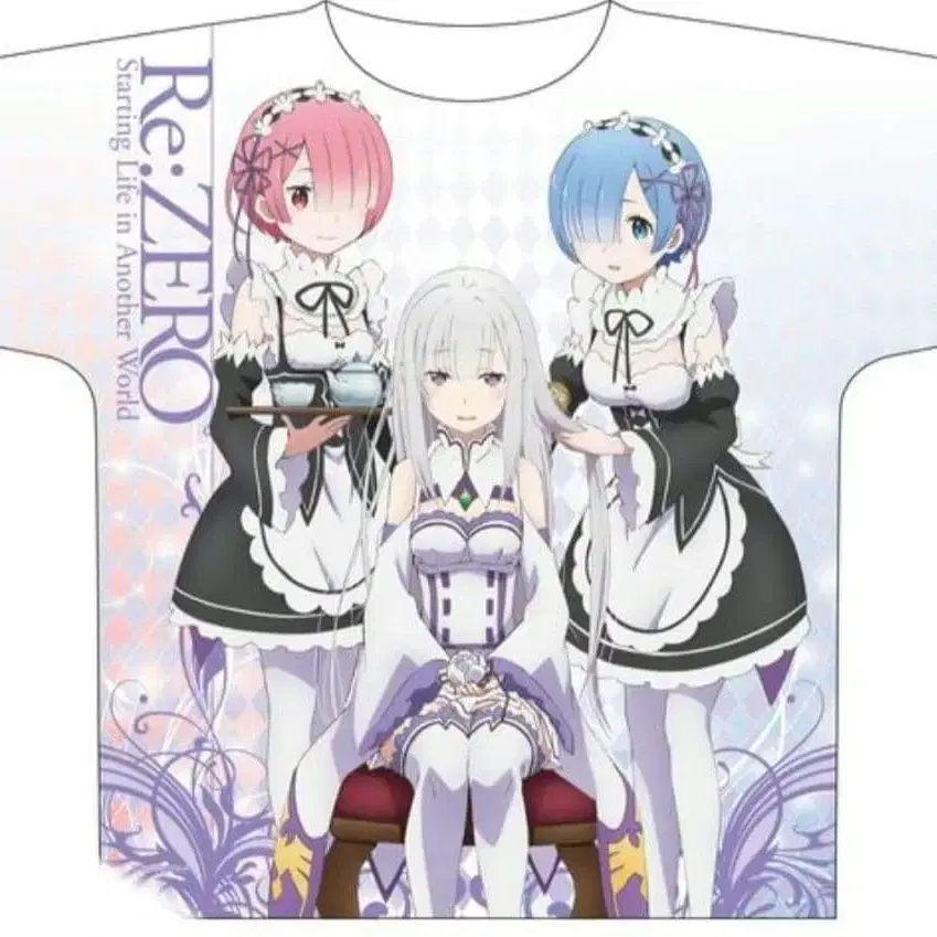 Re: 제로부터 시작하는 이세계 생활 리제로 T셔츠 에밀리아 렘 라무