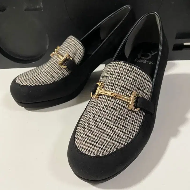 키다리 아저씨 펌프스 힐 하운드투스 체크 비트 로퍼 블랙 24cm