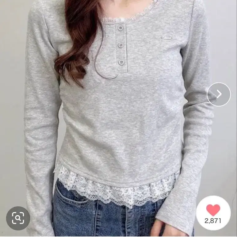 헨리넥 레이스 부착 플레이트 로고 리브 긴팔 상의