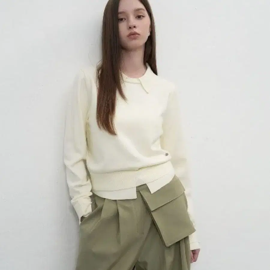 새상품급 general idea 레이어드 카라 부착 니트 풀오버