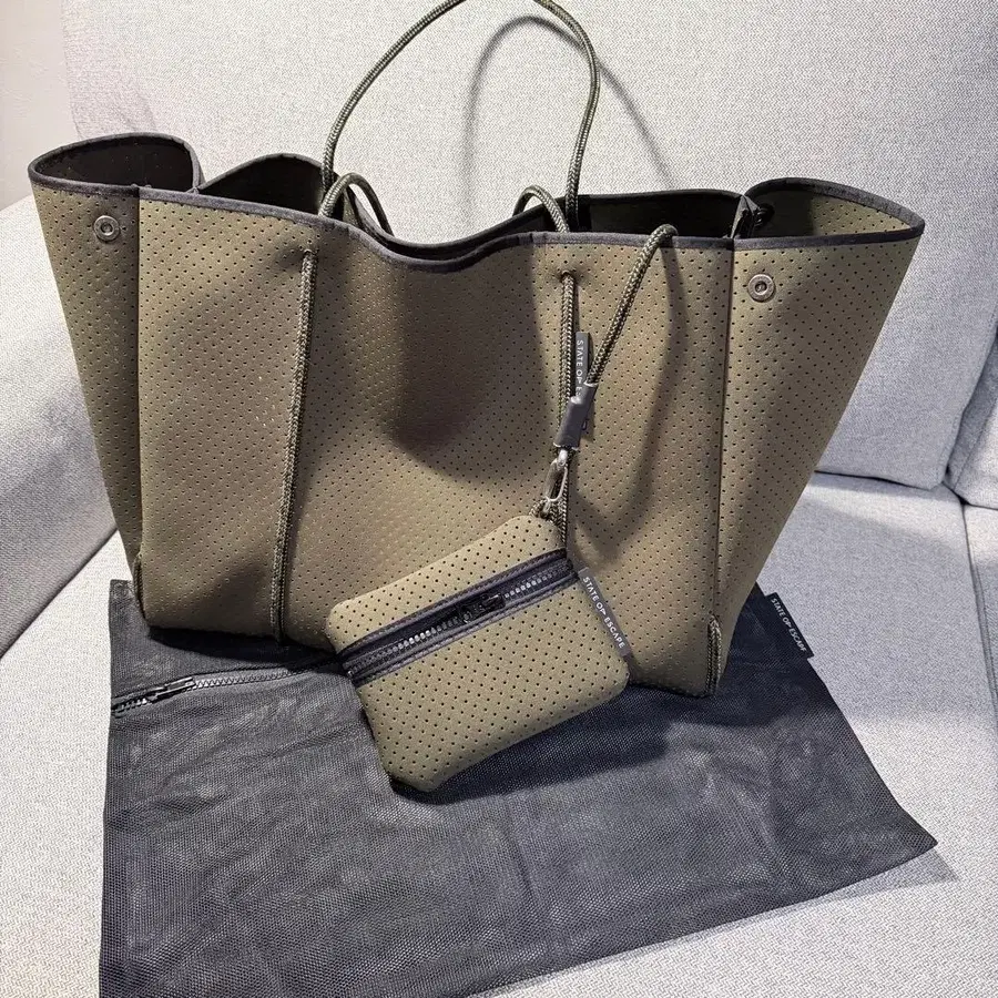 펀칭된 네오프렌 원단에, 바디를 돋보이게 하는 아름다운 세일링용 로프를 사용하여 심플하면서도 완성도 있는 룩을 실현했습니다. 같은 소재의 파우치가 포함된 이 아름답고 수납력이 좋은 가방은 여행 갈 때도 매일 외출할 때도 완벽합니다. 극도로 심플하면서도 주목받는, 마음도 몸도 가벼워지는 가방입니다.