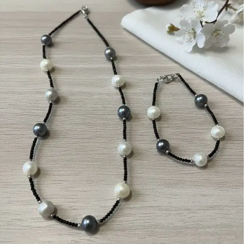 [ 새상품급 ] 담수 펄 목걸이 & 팔찌 세트