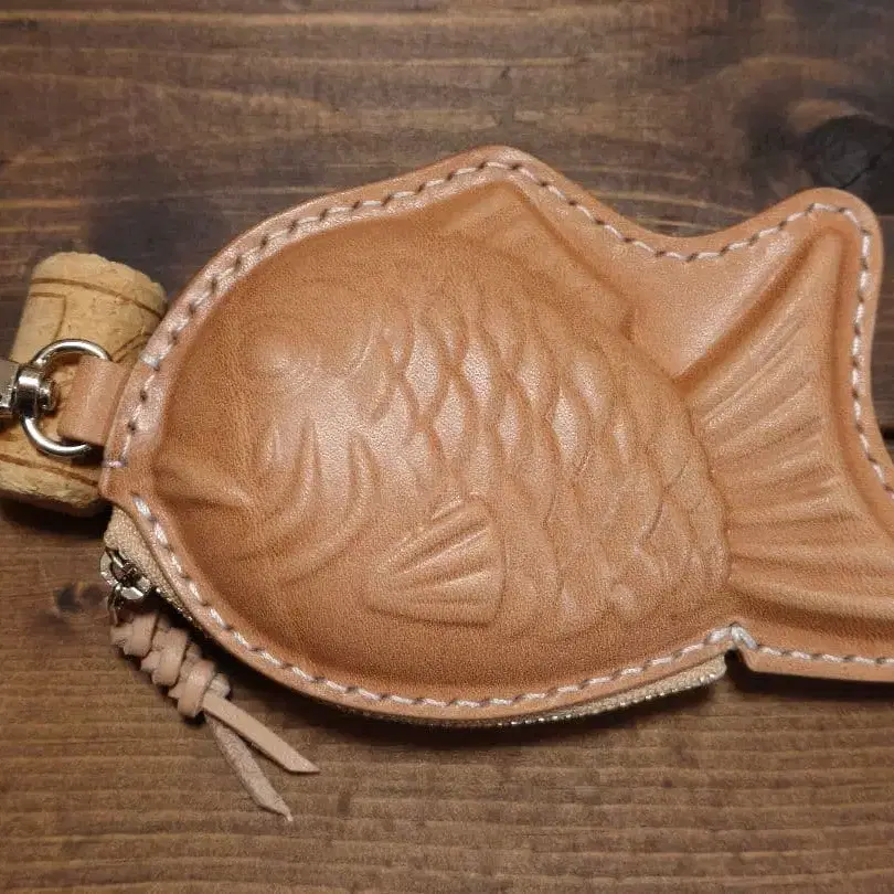 자동 번역되었어요. 원문보기천연 가죽 타이야키 파우치 금속 고리 포함 도치기 가죽 사용