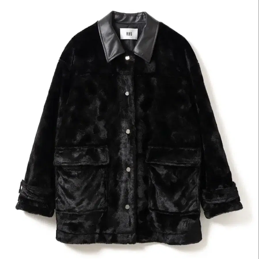 송치 소재와 같은, 짧은 털과 요철이 있는 인조 모피 소재를 사용한 하프 기장의 스텐카라 코트입니다. 따뜻해 보이기 쉬운 퍼 소재를 샤프한 인상으로 마무리했습니다. 메탈 도트 버튼과 옷깃에 배색된 합성 피혁이 악센트가 되어 고급스럽고 세련된 분위기를 연출합니다.