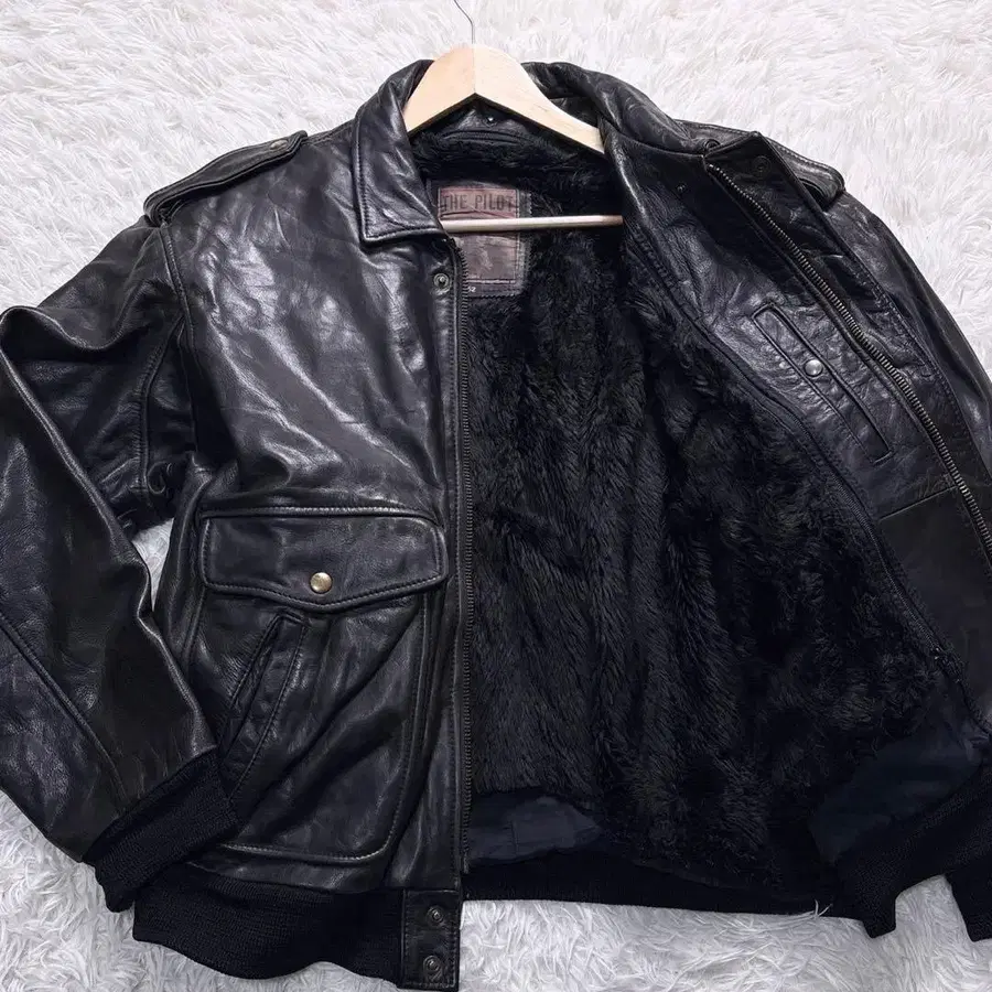 유로 빈티지 A-2 가죽 플라이트 자켓 보아 라이너 XXL 블랙