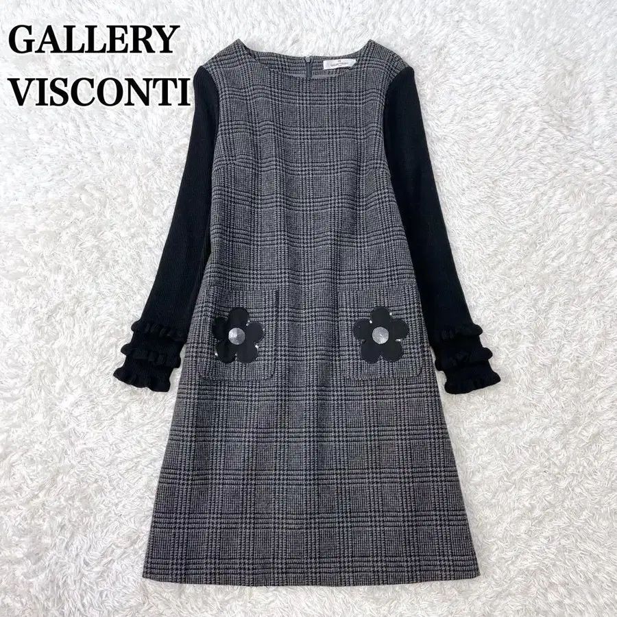 새상품급 갤러리 비스콘티 절개 원피스 체크 트위드 꽃 블랙
