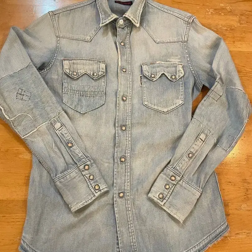 빈티지 가공 BLUE/BLUE 데님 셔츠 긴팔 1