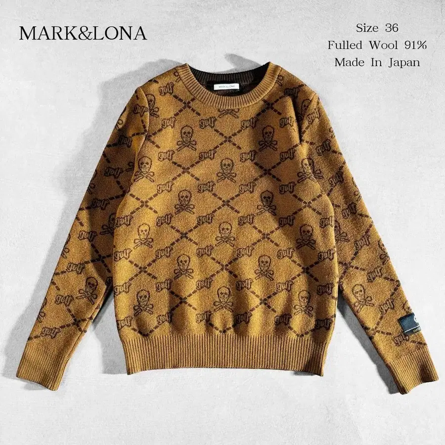 새상품급 MARK&LONA 융모 울 총 패턴 크루넥 니트 36 일본제