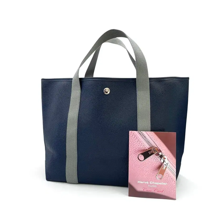 미사용품!! 에르베 샤펠리에 토트백 가죽 네이비 그레이 네이비 계열 인증서 포함