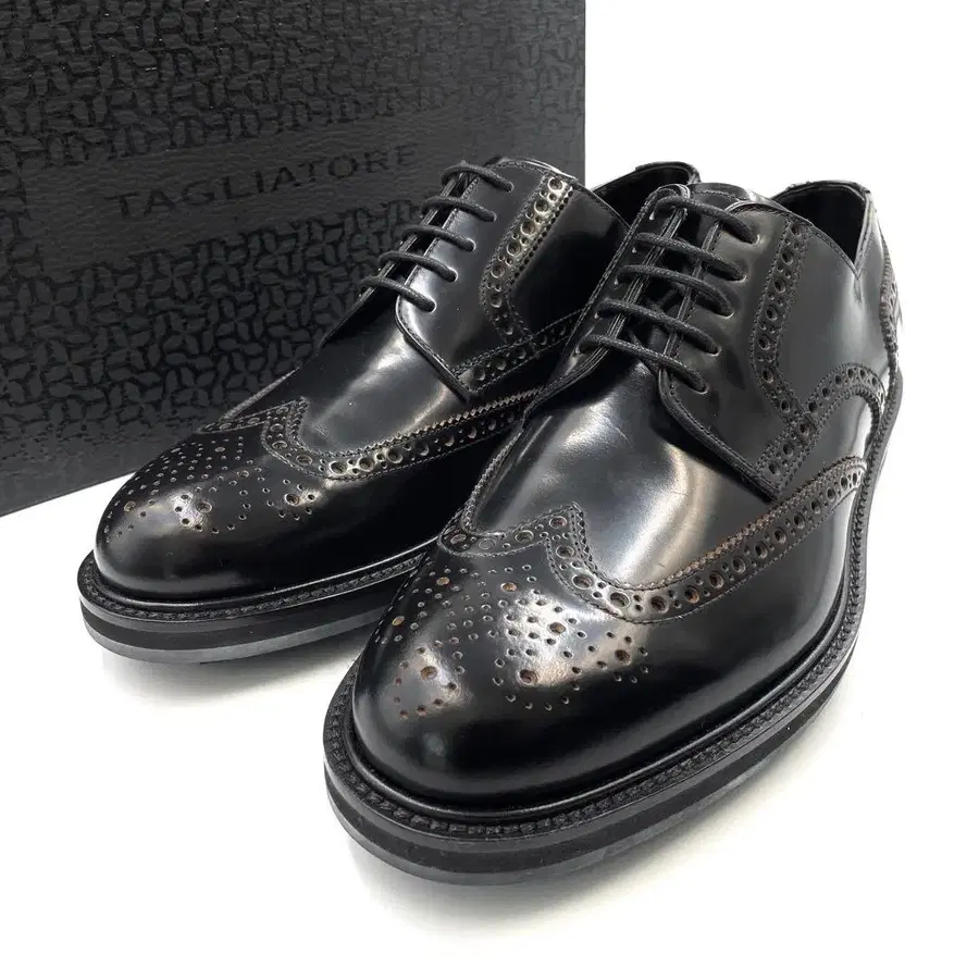 미사용품!! TAGLIATORE 딸리아또레 윙팁 드레스 비즈니스 신발 차심 천연 가죽 가죽 블랙 블랙 계열 박스 있음