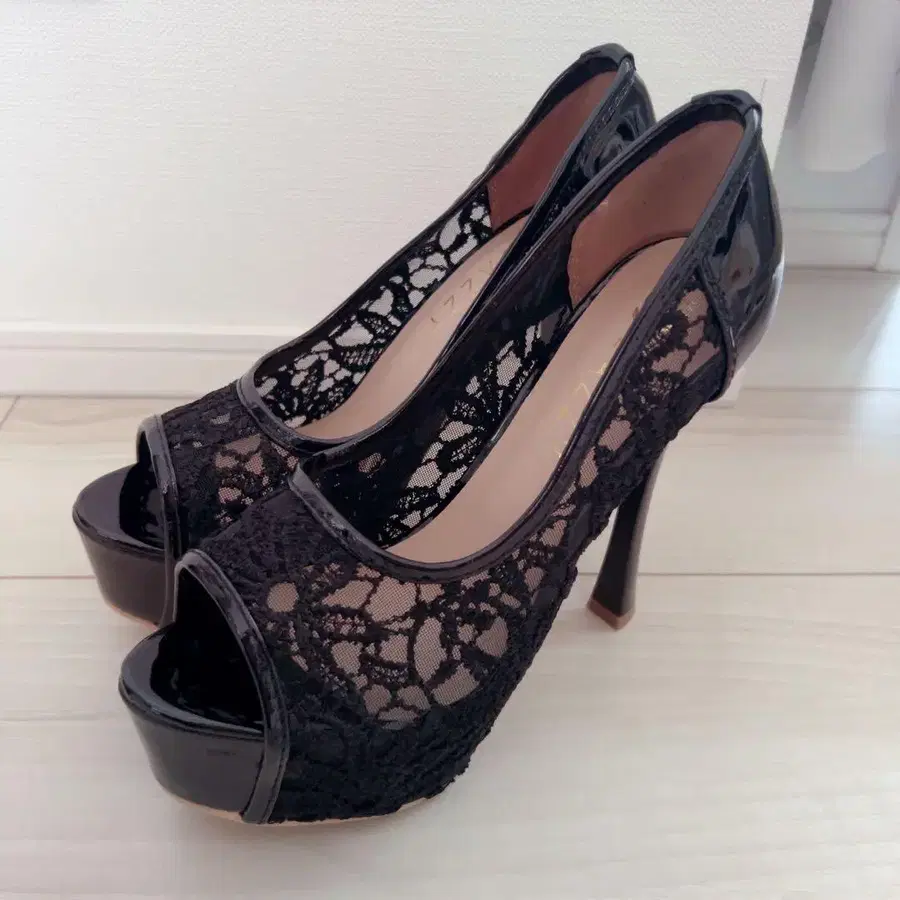 (미사용 13cm) 메쉬 자수 캬바힐 펌프스