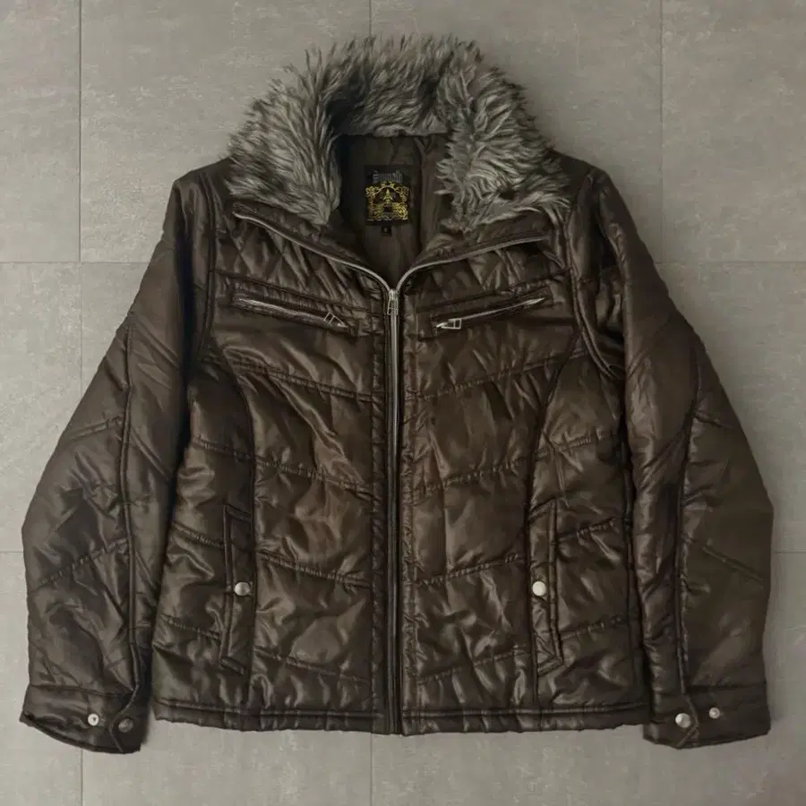 y2k 그런지 헤이세이 갸루 펑크 락 광택 퍼 다운 시크 스타일