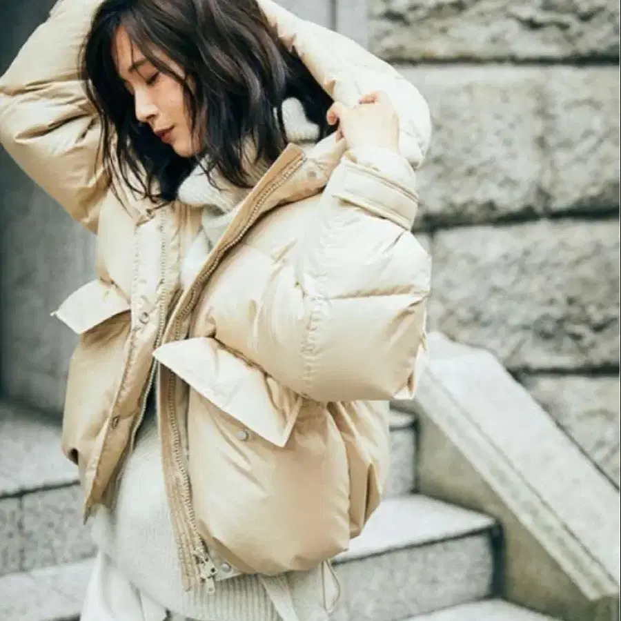 프레이 아이디 베이지 후드 부착 다운 자켓 스나이델 셀포드