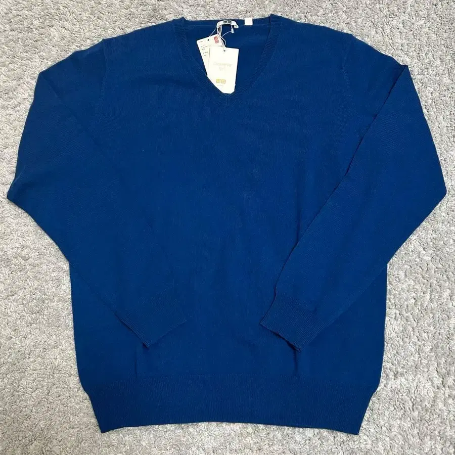 미사용 새상품 유니클로 캐시미어 100% 블루 V넥 사이즈 L